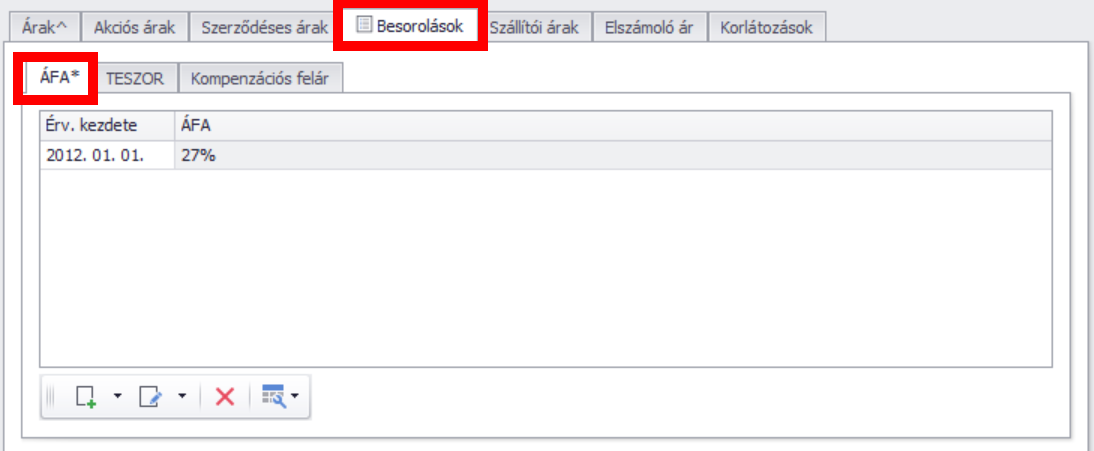 Besorolások / ÁFA fül