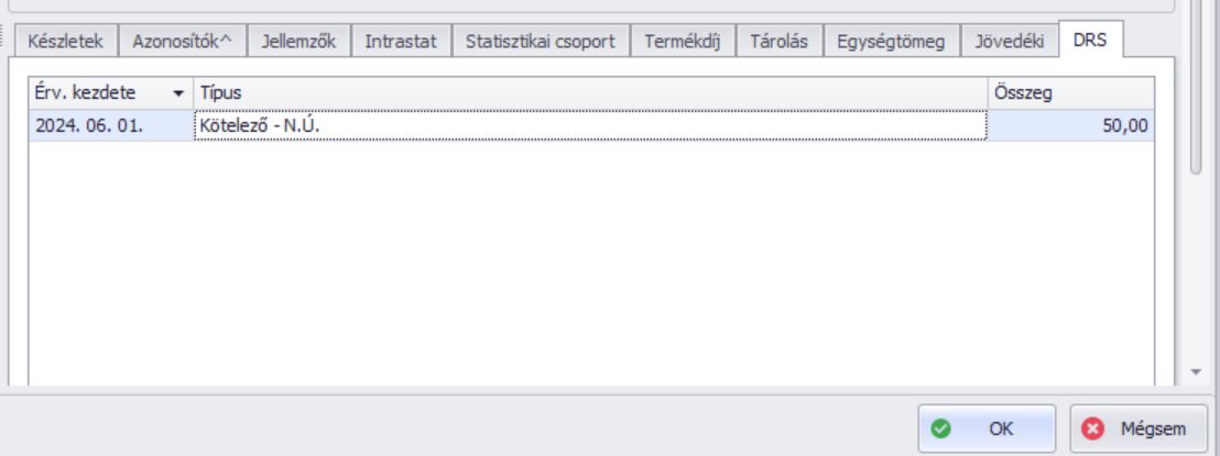 Ezen a fülön van lehetőség a termékhez tartozó kötelező visszaváltási rendszerhez kapcsolódó adatok feltüntetésére.