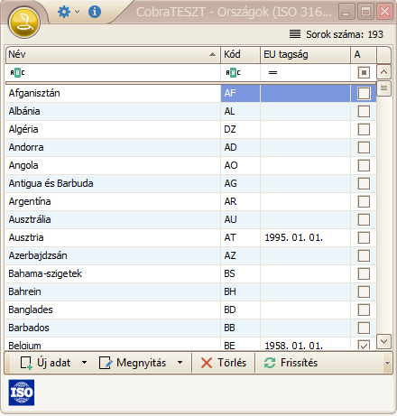 Itt tudjuk szerkeszteni a meglévő országokat, valamint újakat felvenni az “Új adat” gomb megnyomásával.