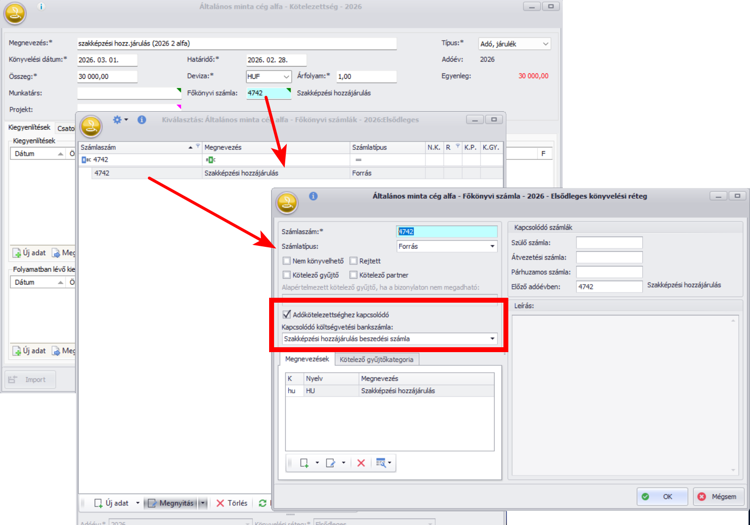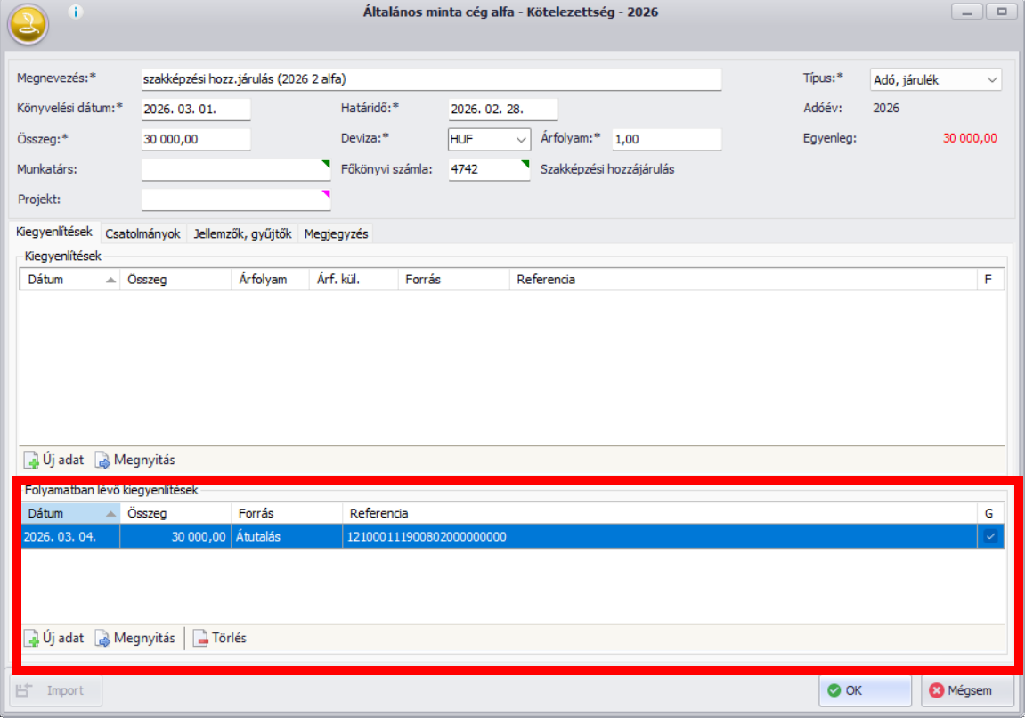 - Kötelezettségek: Vám ÁFA és Adó, járulék típusú kötelezettségek