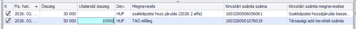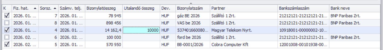 Amennyiben az Utalandó összeg mezőt üresen hagyjuk, a teljes Bizonylatösszeg kerül a megbízásra.