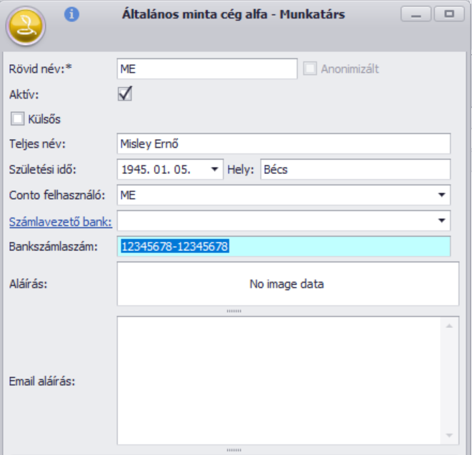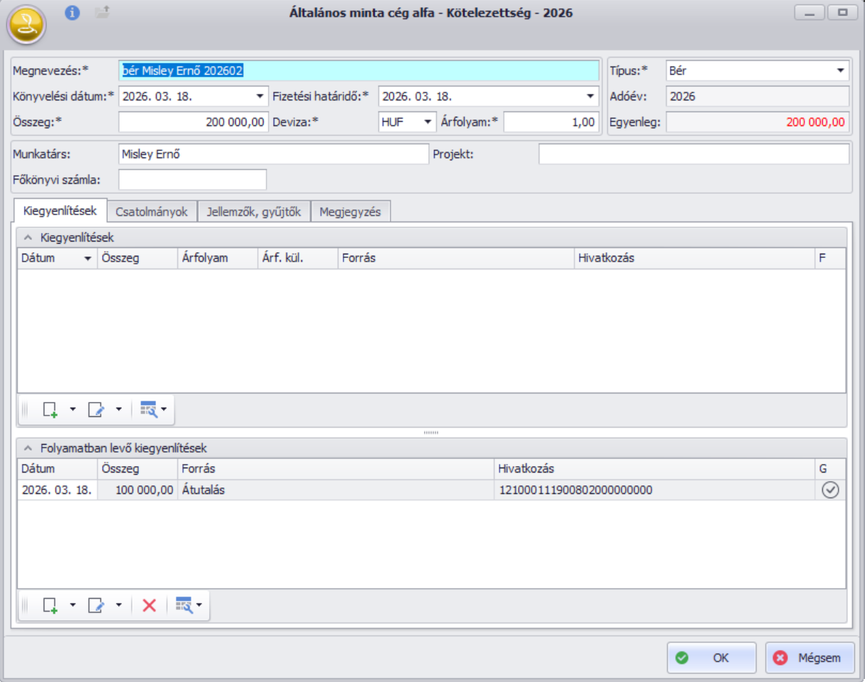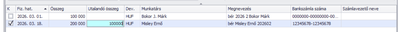 A cél bankszámla száma a Munkatárs törzsadatnál rögzített “Bankszámlaszám” mező értéke alapján kerül automata kitöltésre:
