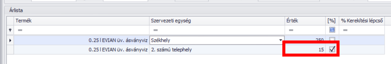 - A vonatkozó árforma alapján kalkulálja a kedvezményes árat. Pl.: Listaár 4200 HUF, a kedvezmény 15% = 3570 HUF